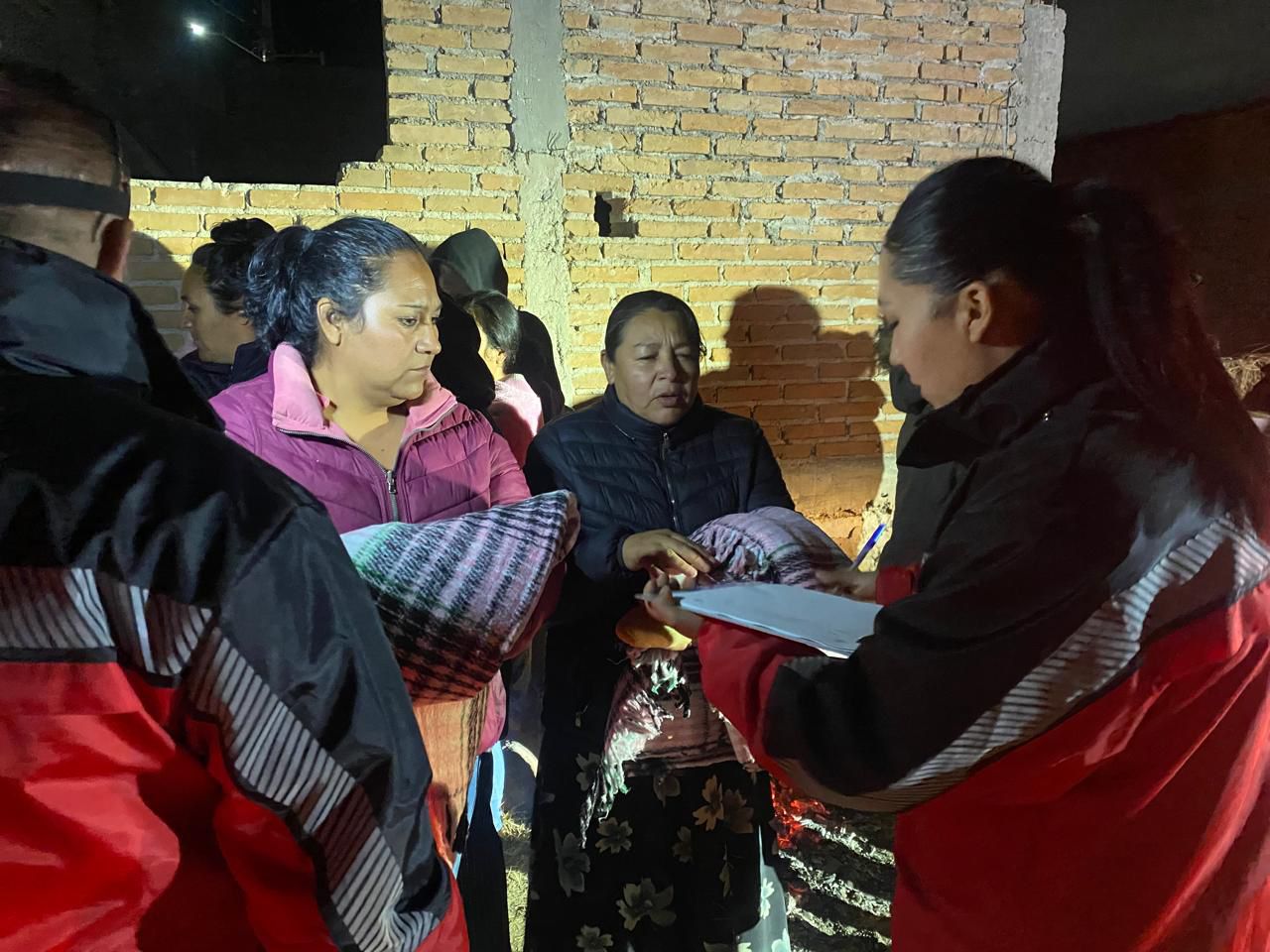 En el trabajo territorial, se realizaron recorridos y entrega de apoyos en 22 de las 33 zonas consideradas vulnerables. Durante estas visitas se otorgaron despensas, cobijas y orientación preventiva, además de revisar al interior de los hogares posibles riesgos por el uso inadecuado de anafres, estufas de leña y sistemas de gas.