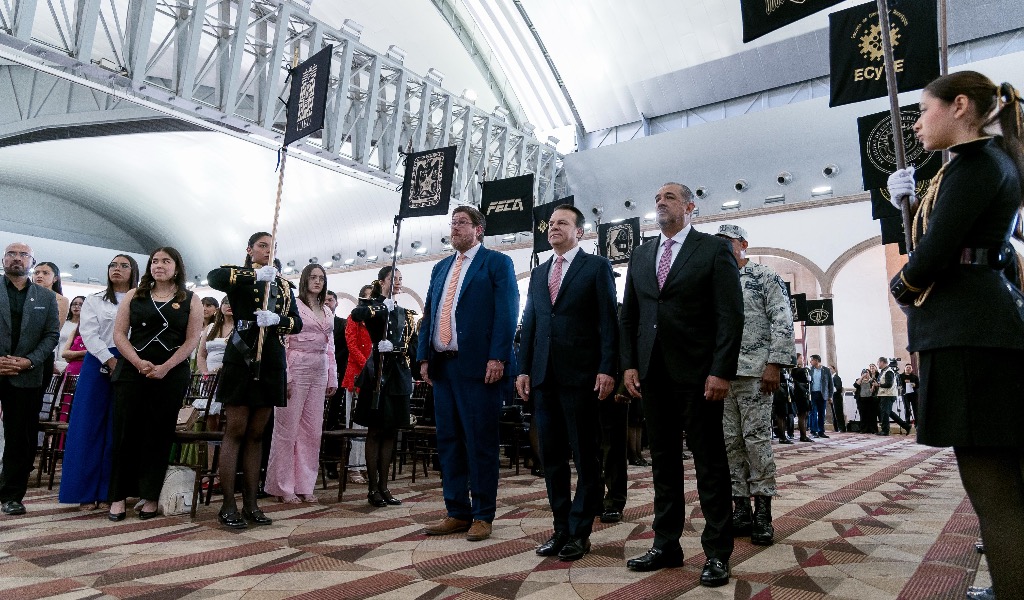 El evento contó con la presencia de autoridades estatales, municipales, educativas y de seguridad, entre ellas el presidente municipal Toño Ochoa; el magistrado presidente del Tribunal Superior de Justicia, Ángel Gerardo Bonilla Saucedo; el presidente de la Junta de Gobierno y Coordinación Política, Héctor Herrera Núñez; así como representantes del Ejército Mexicano y la Guardia Nacional.