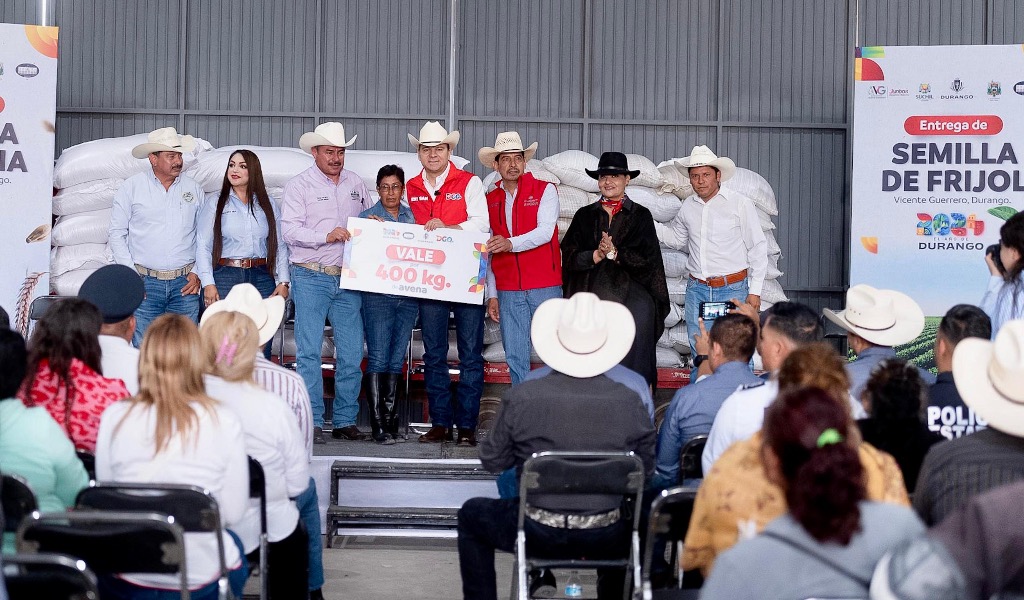 «Es nuestro momento, si nos ponemos de acuerdo, yo hago mi jale, para que el ganado tenga mejor genética y buena nutrición; les ayudaremos a vender su producto y buscar otras economías», afirmó el gobernador Esteban Villegas Villarreal al entregar semilla de avena forrajera y de frijol para los municipios de Poanas, Nombre de Dios, Súchil y Vicente Guerrero.